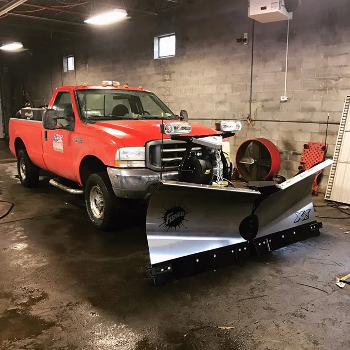 Adding a plow to a truck can transform your rig into a business. Be your own boss and write off expenses on your taxes. This 2002 Ford Superduty can add to its existing accounts now that it has a new 8-1/2' Fisher XV2 Stainless on the front. Fisher Plows