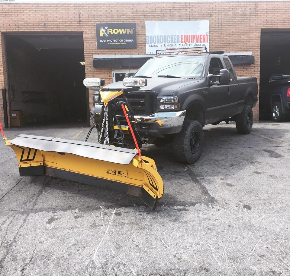 This plow driver will have a aerial view of the lot he's plowing. We installed a used 8'-10' Fisher XLS today on this 2001 Ford F-350 Powerstroke. We even wired the truck to be able to operate the Fisher EZV plows still in this company's fleet.
