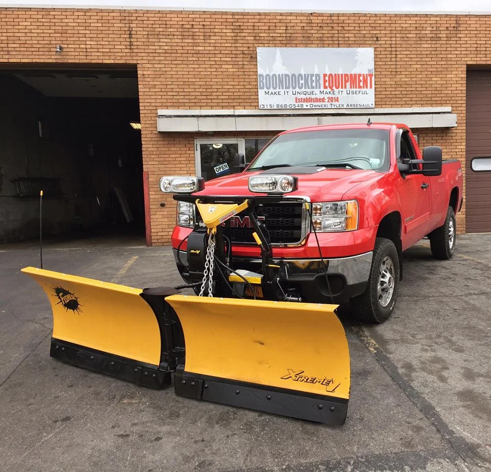 Think snow... the temps are cold, there is a chance for snow flurries Sunday night, so might as well come get a new or used plow from us. This 2011 GMC snagged a clean used 8-1/2' Fisher Xtreme V Mild Steel today. We still have one left in stock with a stainless version on the way.www.BoondockerEquipment.com