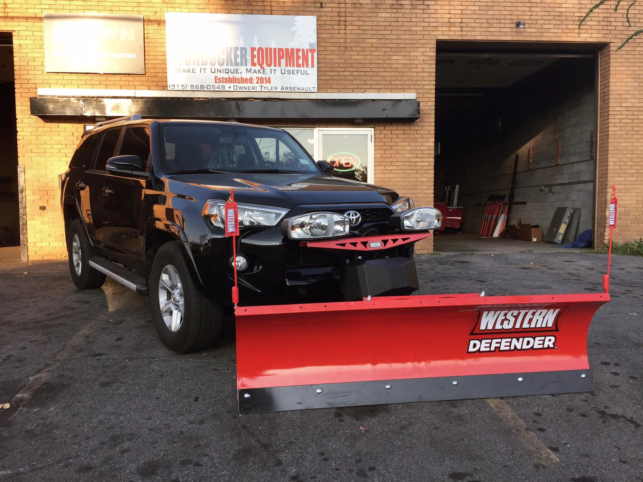 The best offense is a great defense. This 2015 Toyota 4Runner came in today for a custom installation of a brand new 6'8" Western Defender snowplow. All that's left to do is a 2" leveling kit.