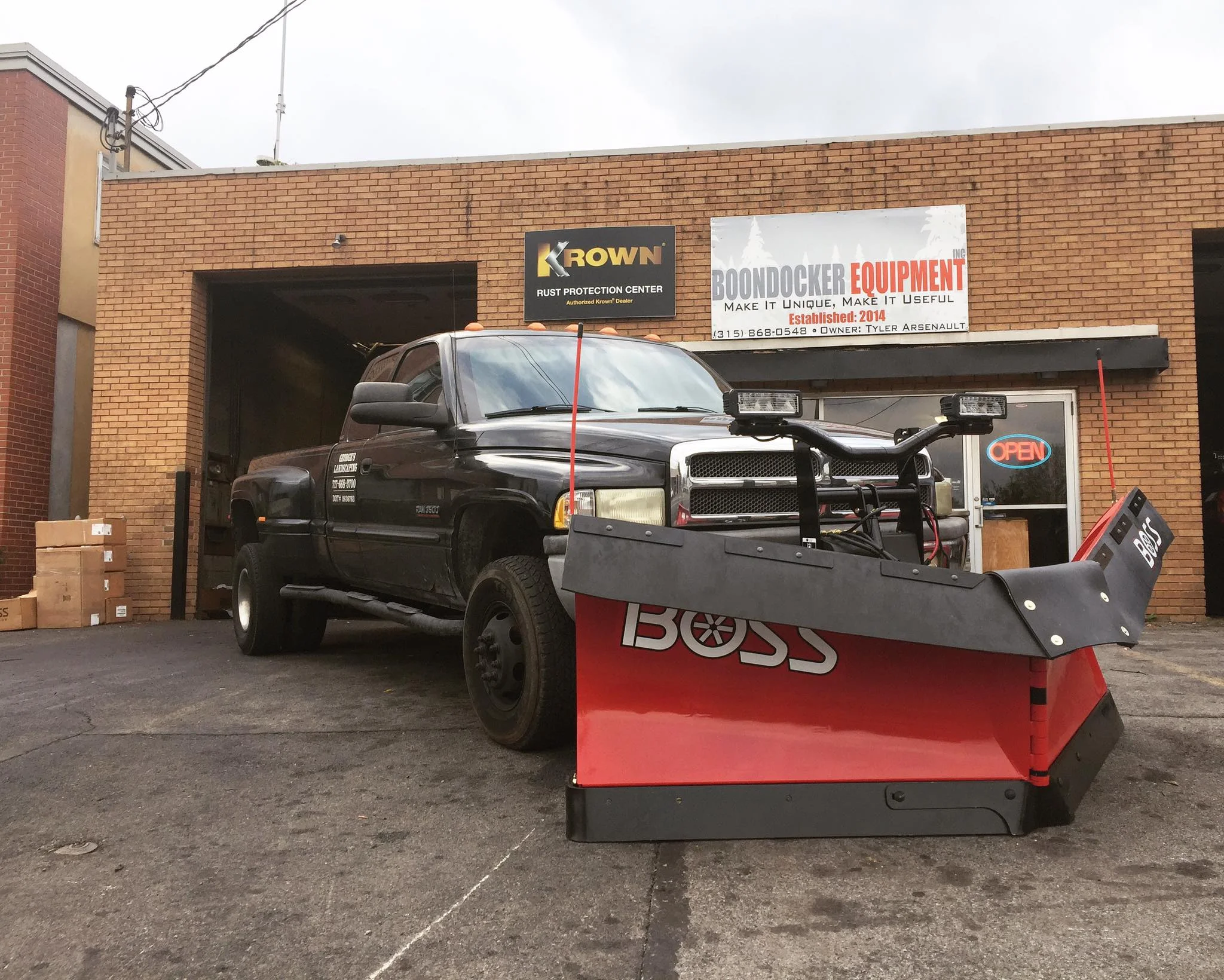 You can't teach an old dog new tricks but you can put a new plow on an old truck.... yes that sentence makes perfect sense. This 2001 Ram 3500 Cummins drove up from PA today to get a brand new 9'2" Boss DXT installed with Rubber Deflector and Shoe Kit upgrades. We even added Timbren Suspension Enhancers to help manage the weight.