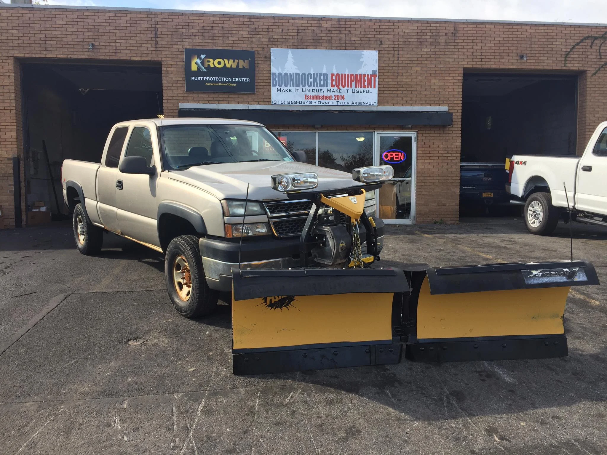 Do you think they are called V plows because of the shape they make or do you think the V stands for Versatile. This 2005 Chevrolet 2500HD upgraded from a straight to a used 8-1/2' Fisher V plow today with Timbren Suspension Enhancers.