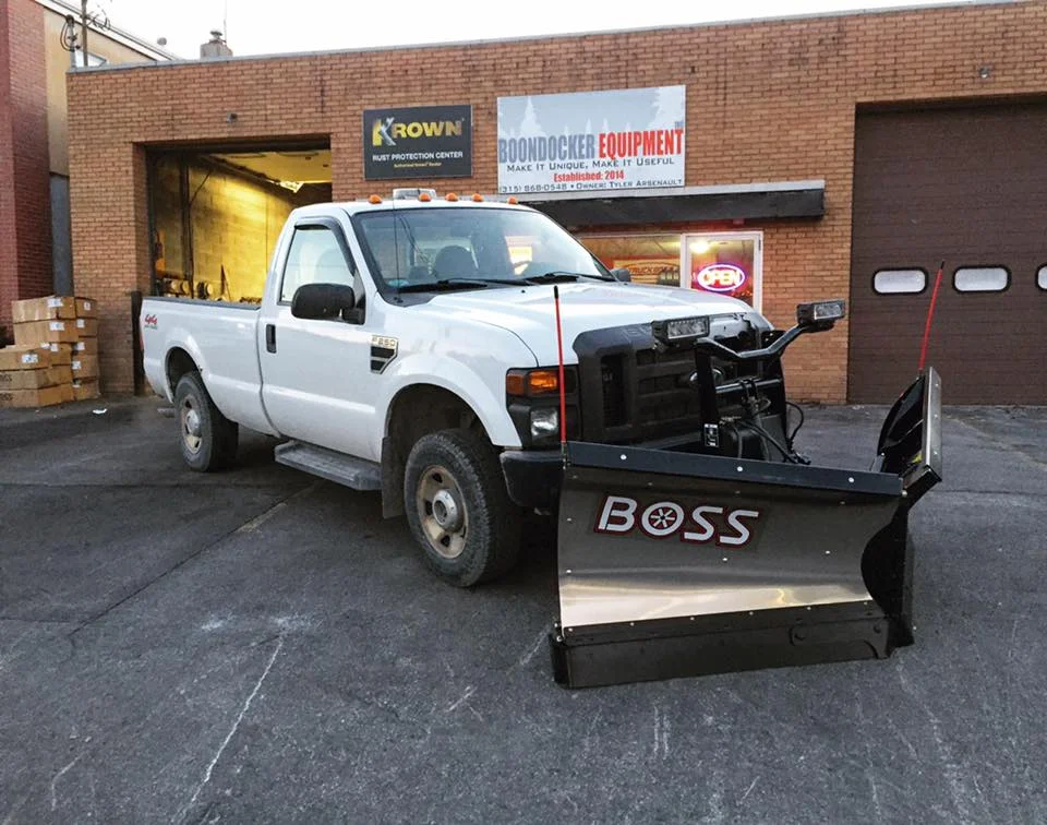 After two broken headgears on a Fisher, this 2008 Ford Superduty traded for a brand new 9'2" Boss DXT Stainless. Standard features the Boss offers are LED headlights, built in curb guards, Smart Hitch 2 hook up (just flick a switch) and patented snow catcher in the middle (eliminate center trail spill through). #switchlikeaboss