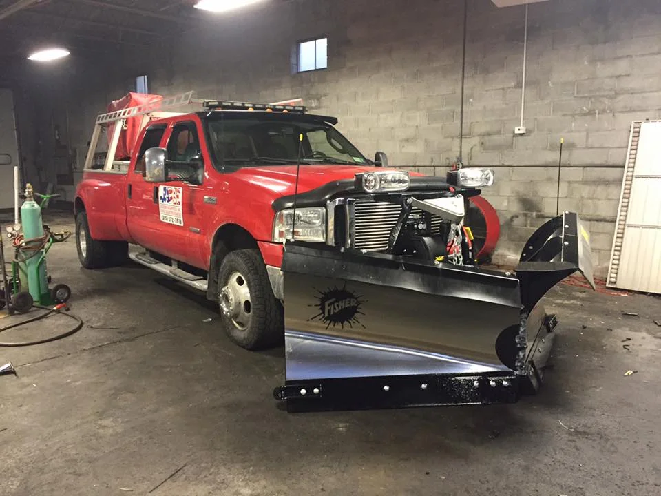 This 2006 Ford Superduty has paired up with a brand new 9-1/2' Fisher XV2 today to make the ultimate team for open parking lots around Syracuse. We web added a rubber deflector and curb guards to finish it off.