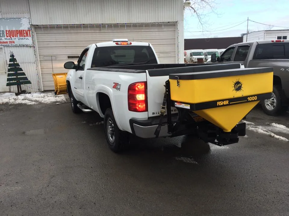 With yesterday's ice storm, this 2008 Chevy 2500HD was in desperate need for a salter so it came in today for a brand new Fisher Model 1000.